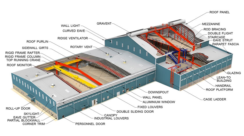 A steel building is a metal structure fabricated with steel for the internal support and for exterior cladding, as opposed to steel framed buildings which generally use other materials for floors, walls, and external envelope. Steel buildings are used for a variety of purposes including storage, work spaces, Transfer towers, Transmission Towers, Gantries and living accommodation. They are classified into specific types depending on how they are used.